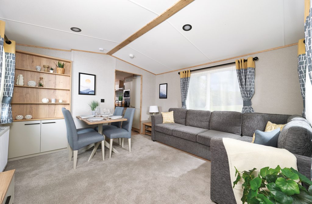 Featuring wider sliding doors and a fully equipped wet room, the ABI Derwent offers smooth and easy navigation throughout. The spacious main bedroom provides the flexibility of optional hoists, ensuring comfort and support for a variety of mobility needs. The stylish living area, with its plush seating, creates the perfect space to unwind, while the ramped access and availability of a largely flat pitch make outdoor access seamless.