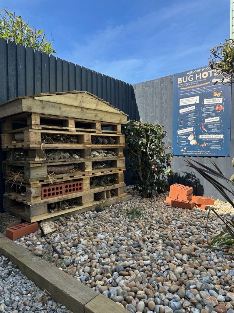 This project has been a fantastic way to engage young minds with the natural world. Under the guidance of Kelly’s Forest School, the children learned about the important role insects play in our ecosystem – from pollination to pest control – and how we can all do our part to protect them. Then, with plenty of enthusiasm (and muddy boots!), they got hands-on with the construction process, building bug-friendly spaces that are both educational and charming.
